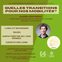 Conférence d'Aurélien Bigo, chercheur indépendant et associé à la chaire Énergie et Prospérité. Il sur la transition énergétique des transports et est l'auteur du livre "VOITURES, Fake or not ?".
