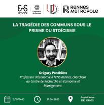 Cette intervention propose de revisiter la tragédie des communs (la surexploitation d'une ressource commune en l'absence de droits de propriétés) sous le prisme du Stoïcisme, et, en particulier, de la discipline stoïcienne des désirs ("indifférence aux choses indifférentes"), selon laquelle il ne faut rien désirer pour les choses qui ne dépendent pas de nous (Epictète, Manuel, II). Pour ce faire, le conférencier propose deux traductions microéconomiques distinctes de la discipline stoïcienne des désirs, qui prennent la forme d'une extension du facteur symétrique de la relation de préférence au-delà de ses contours dans le cadre de préférences classiques, et il examine leurs conséquences dans le cadre d'un jeu de ressource commune (common pool resource game) joué par N agents stoïciens. Il démontre que, quelle que soit la traduction économique de la discipline stoïcienne des désirs adoptée, l'équilibre symétrique de Nash du jeu n'admet pas de surexploitation de la ressource partagée, ou, si une telle surexploitation de la ressource commune a lieu, elle n'est en rien considérée comme tragique par les agents stoïciens. Contrairement à ce qu'on pourrait anticiper à première vue, un recentrement sur soi - sur les choses qui dépendent de nous - permet de surmonter la tragédie des communs.