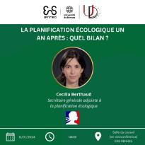 Conférence organisée par UbiDEM, avec Cecilia Berthaud, secrétaire générale adjointe à la planification écologique. Énarque, diplômée de Sciences Po Paris et de l’université de Londres, la haute fonctionnaire a commencé sa carrière à l’Inspection Générale des Finances avant de rejoindre le Ministère de la transition écologique en tant que sous-directrice du financement de l’économie du logement. Elle dirige désormais le pôle Ambition du secrétariat général à la planification écologique.