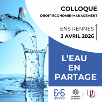 Le département Droit - économie - management de l’ENS Rennes un colloque transdisciplinaire sur le sujet de l’eau en partage. Les actes en seront publiés. L'appel à contribution(s) d’une page, accompagnées d’une brève bibliographie est en cours.
